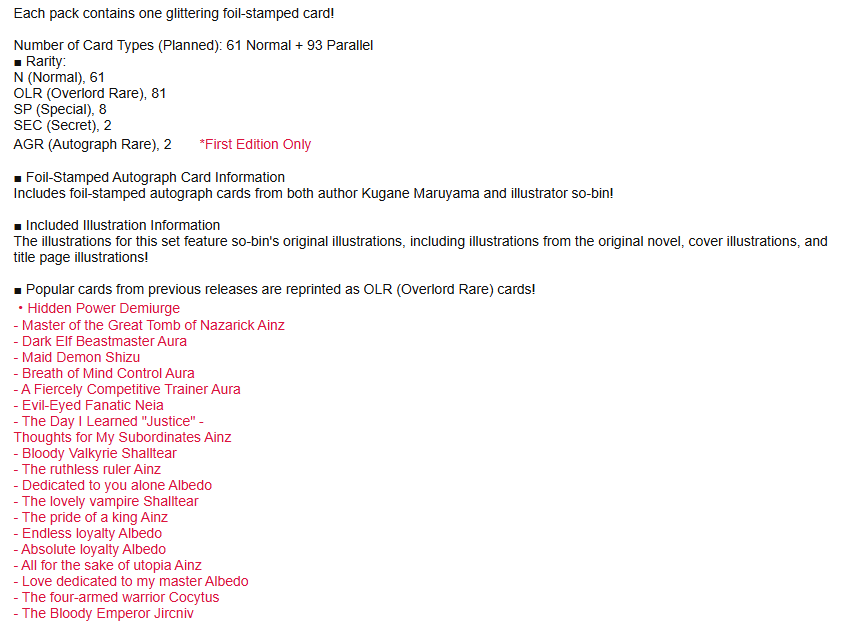 You are purchasing 1 booster box of Overlord Light Novel Premium. The box and its contents will be opened live on stream.