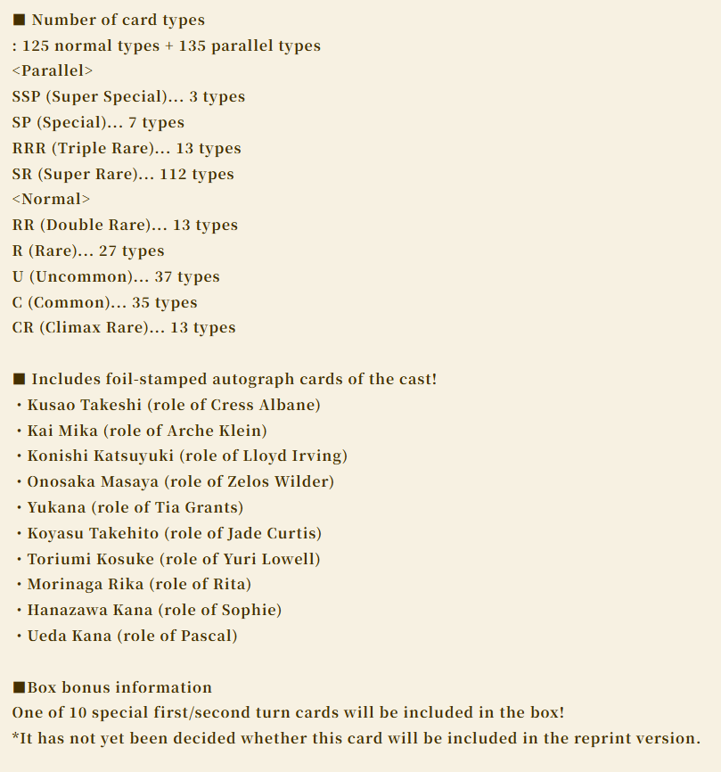 You are purchasing 1 booster box of Tales of Series. The box and its contents will be opened live on stream.