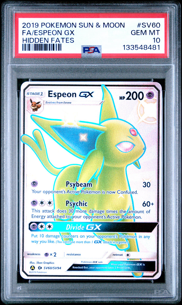 (EN) PSA 10 2019 POKEMON SUN & MOON HIDDEN FATES #SV60 FULL ART/ESPEON GX